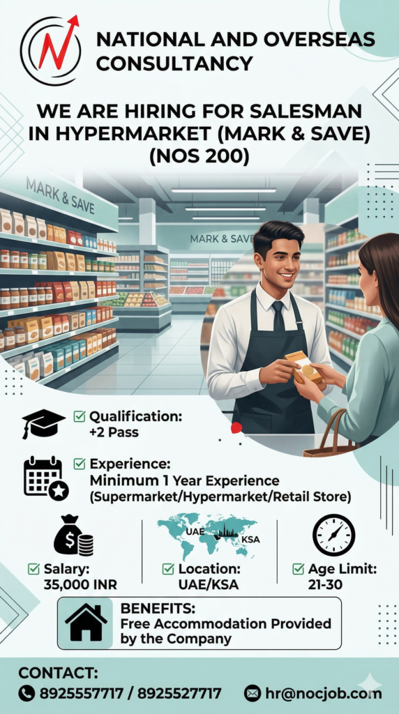 - Experience: A minimum of 1 year of experience is required in a Supermarket, Hypermarket, or general Retail Store environment.