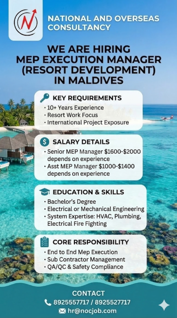 We are currently hiring for Senior MEP Manager and Assistant MEP Manager roles. If you have a strong background in electrical or mechanical engineering and international project exposure, we want to hear from you.